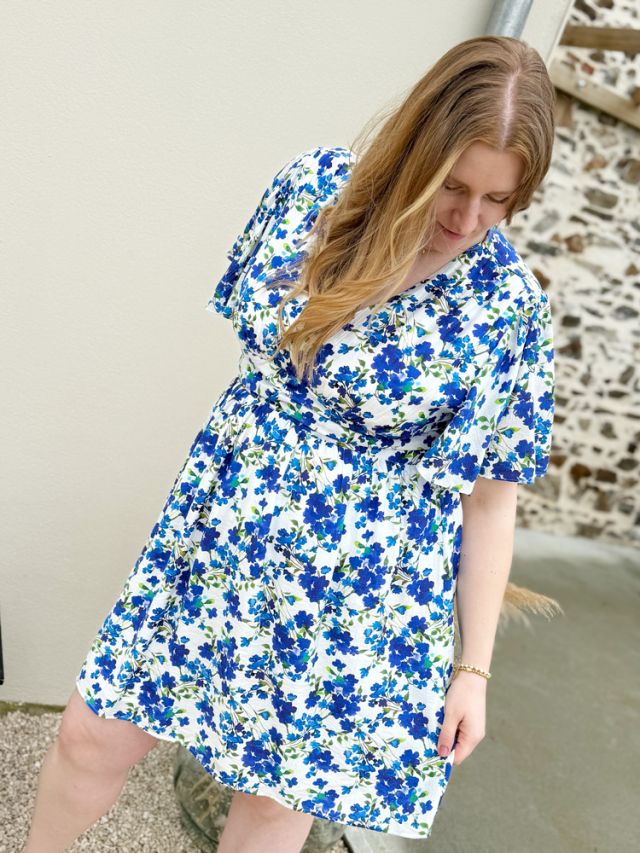 Laissez-vous séduire par cette robe courte blanche fleurie bleu. Une pièce estivale pleine de douceur et de fraicheur pour les beaux jours. F2minine et raffinée, elle sera parfaite pour des occasions particulières ou au quotidien.