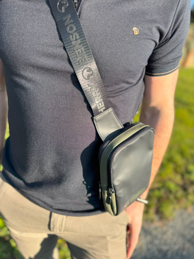 Optez pour cette sacoche en similicuir noir et kaki, tendance et moderne pour vos sorties au quotidien