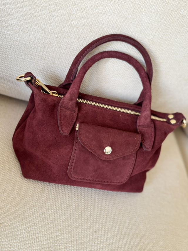 Apportez une touche de style à vos tenues avec ce sac à main en daim décliné en trois couleurs harmonieuses. Son design compact et sa petite anse élégante en font l’accessoire parfait pour accompagner vos journées comme vos soirées.