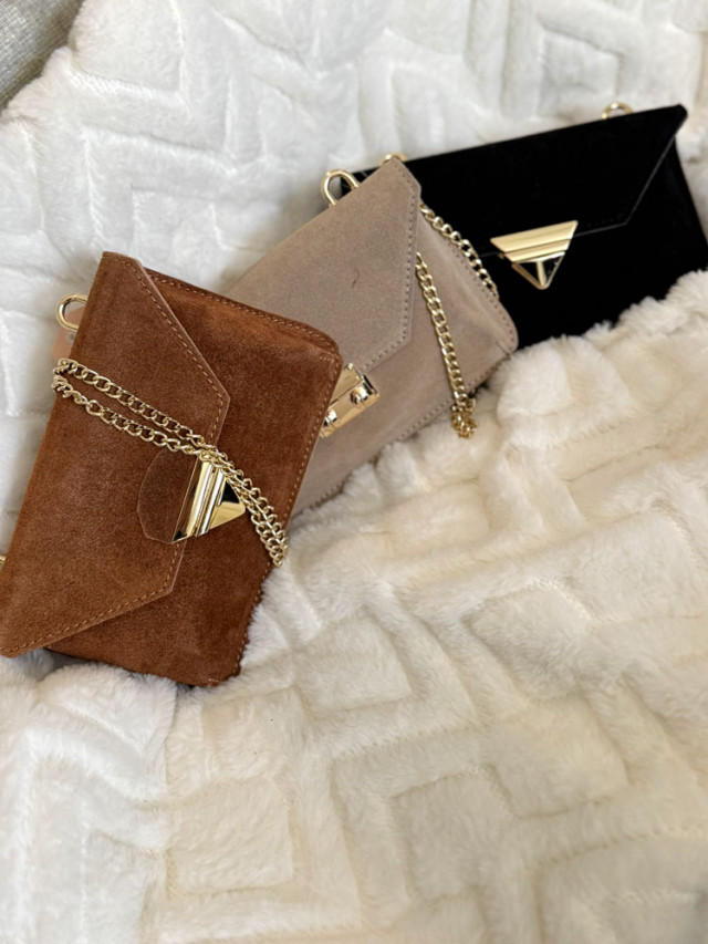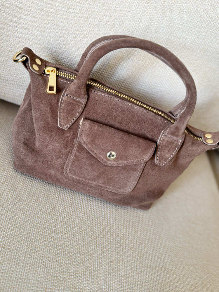 Apportez une touche de style à vos tenues avec ce sac à main en daim décliné en trois couleurs harmonieuses. Son design compact et sa petite anse élégante en font l’accessoire parfait pour accompagner vos journées comme vos soirées.