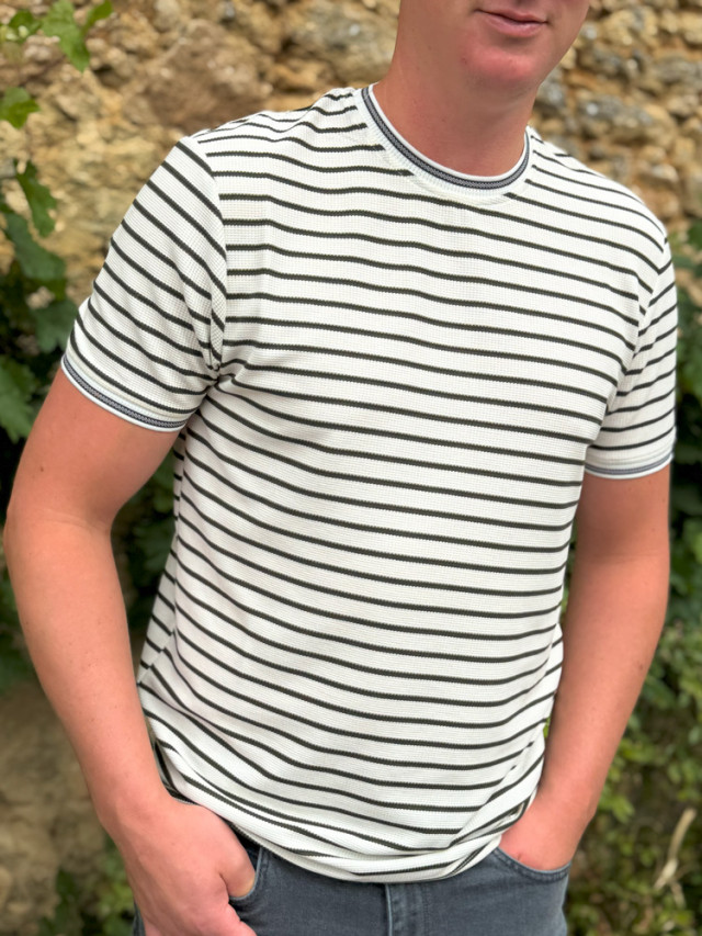 Optez pur l'élégance décontractée avec ce t-shirt blanc rayé. Discret et moderne par son tissu en nid d'abeille, vous allez adore le porter.