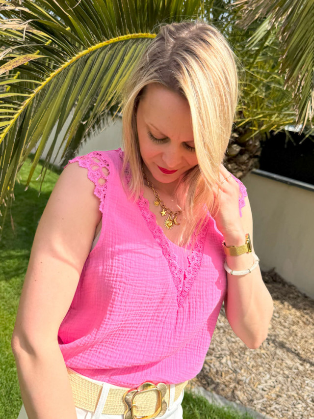 Adoptez un look à la fois chic et décontracté avec ce débardeur écru orné de dentelle qui apportera une touche élégante et de douceur. Raffiné, il sera parfait pour vos tenues estivales