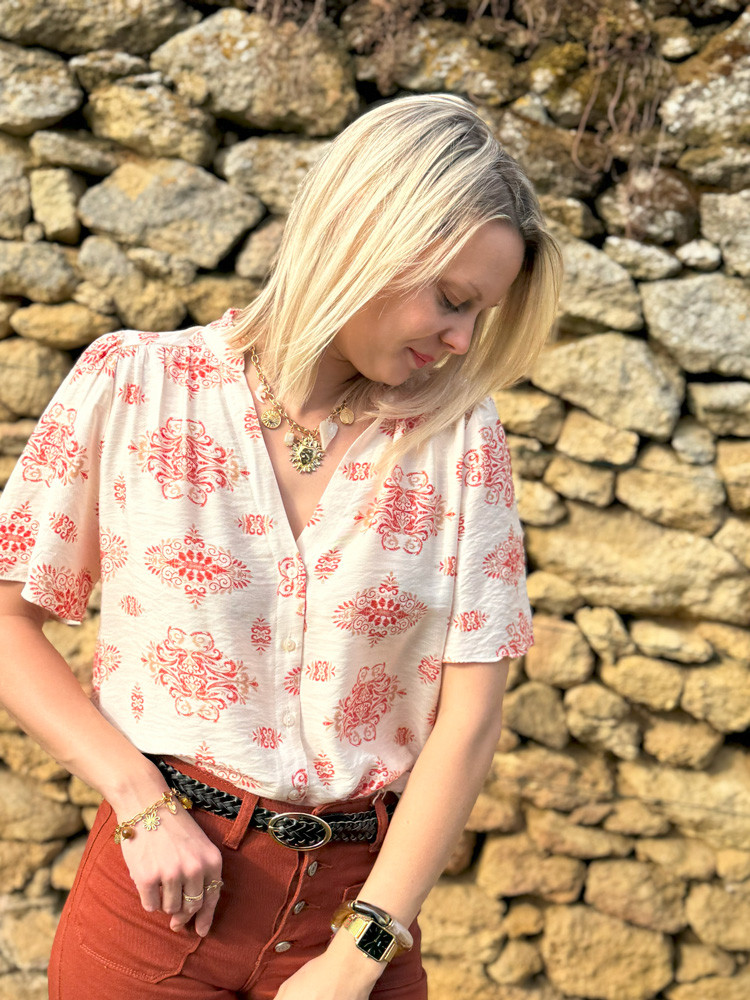 Adoptez un look léger et tendance avec ce top fluide inspiré du style bohème. Confortable et élégant associez le à son pantalon pour un total look combinaison.