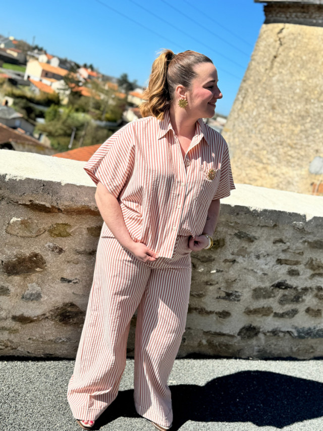 Alliez légèreté et structure avec notre top chemisier à rayures. Ce haut hybride reprend les codes de la chemise dans une version plus décontractée et fluide.