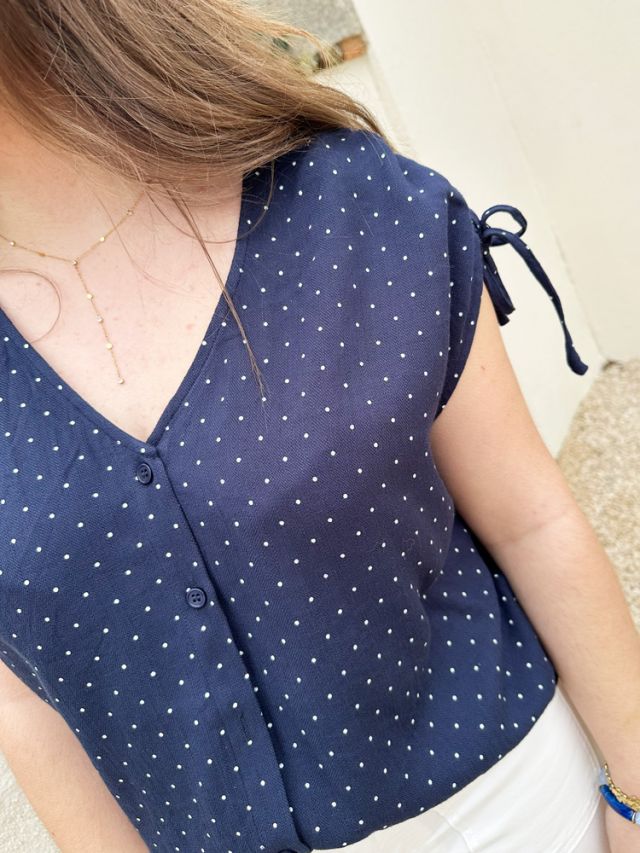Craquez pour ce top marine à pois signé Molly Bracken. Un imprimé indémodable qui apporte une touche vintage à votre look.