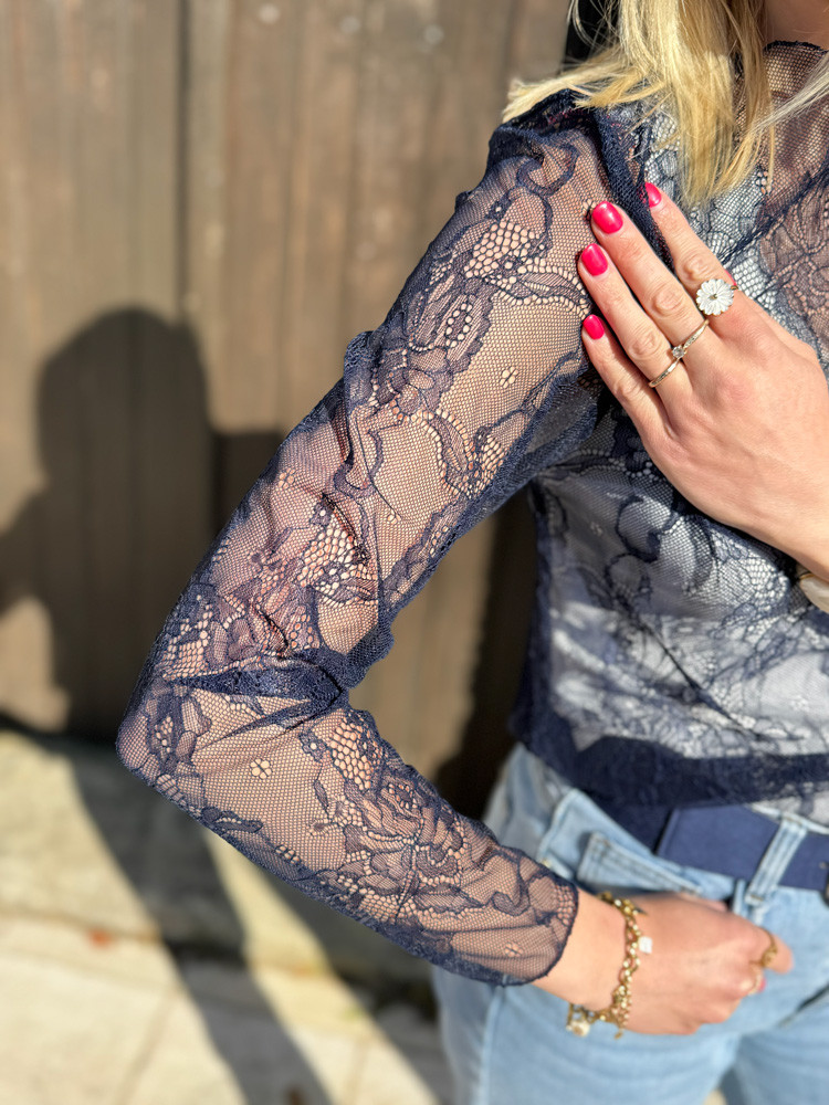 Un haut résille en dentelle transparent pour sublimer votre silhouette et l'associer à un pull pour apporter finesse et raffinement à votre tenue