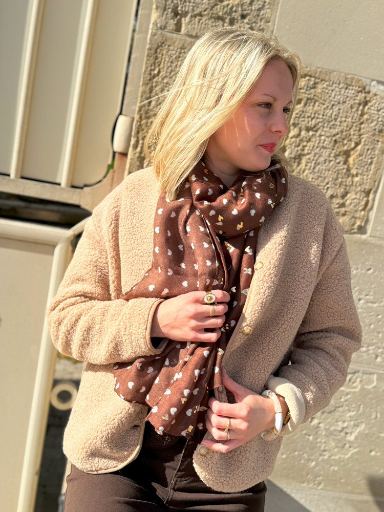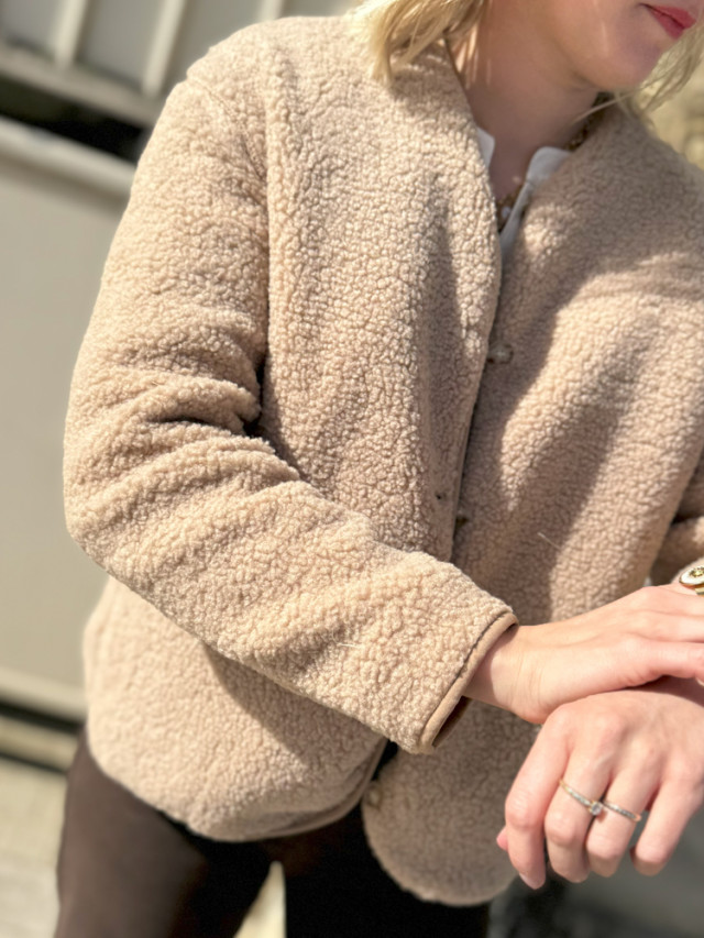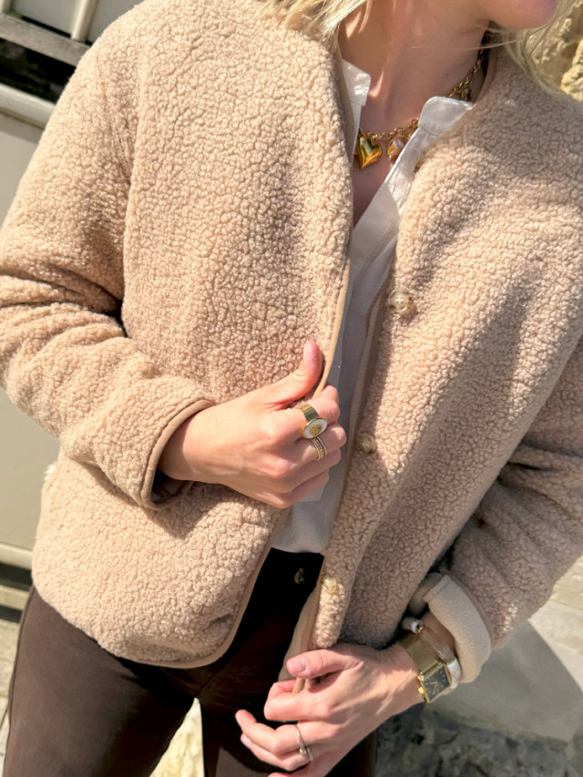 Alliez confort et style avec cette veste molletonnée couleur taupe, idéale pour vos looks décontractés au quotidien.