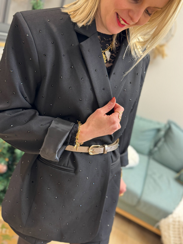 Brillez avec élégance avec ce blazer noir orné de perles sequins scintillants