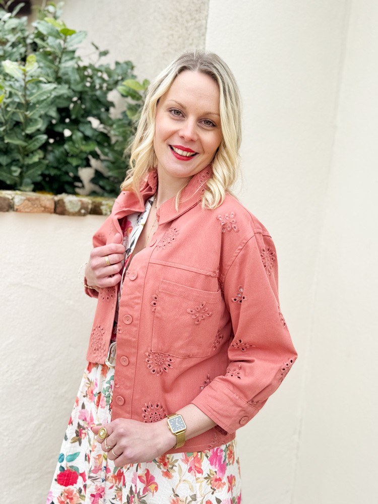 Optez pour cette veste jean revisitée qui offre de délicat motifs fleurs ajourés en broderie anglaise dans un style bohème. Disponible en 2 coloris, cette veste apporte une touche lumineuse et sophistiquée à vos tenues.